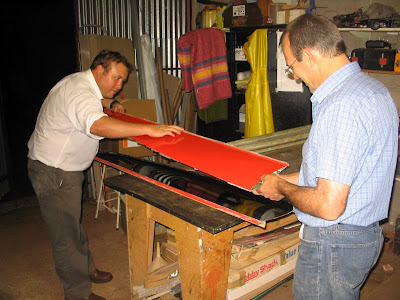 The inner 49 gram glass cloth skin, which completes the sandwich, is wet out on separate plastic sheets.